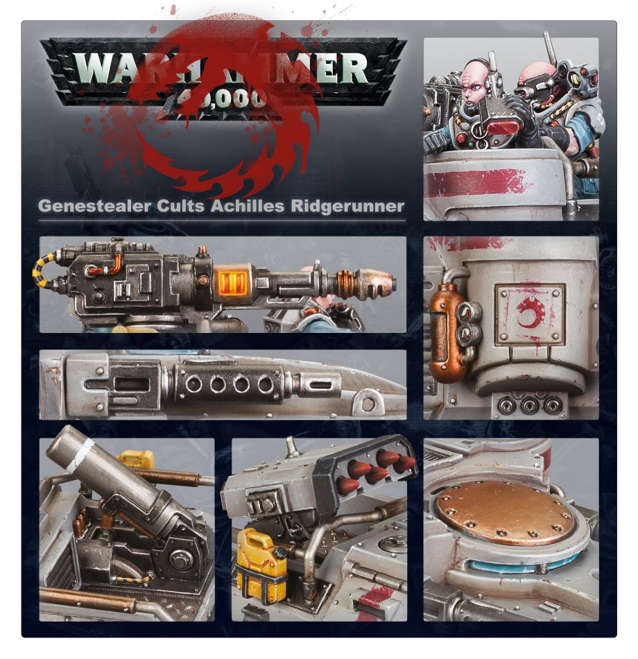 Achilles Ridgerunners are fast-moving buggies capable of carrying a significant amount of ordnance. They can also operate as a vital support vehicle for units of Atalan Jackals,