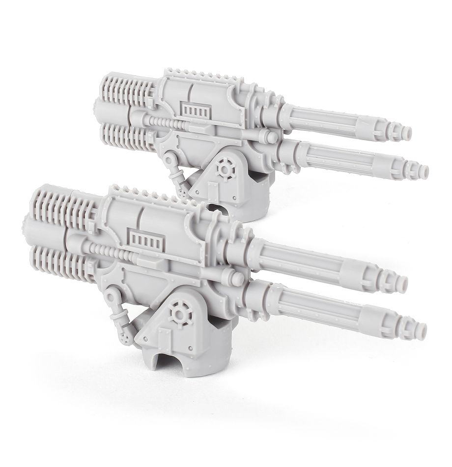 The sheer power, energy and armour-piercing capabilities behind the turbo laser destructors make these paired weapon ideal for taking out enemy Titans. Mounted on a Warlord’s carapace, they complement other heavy weaponry like volcano cannons, turning your Titan into a true god-machine capable of