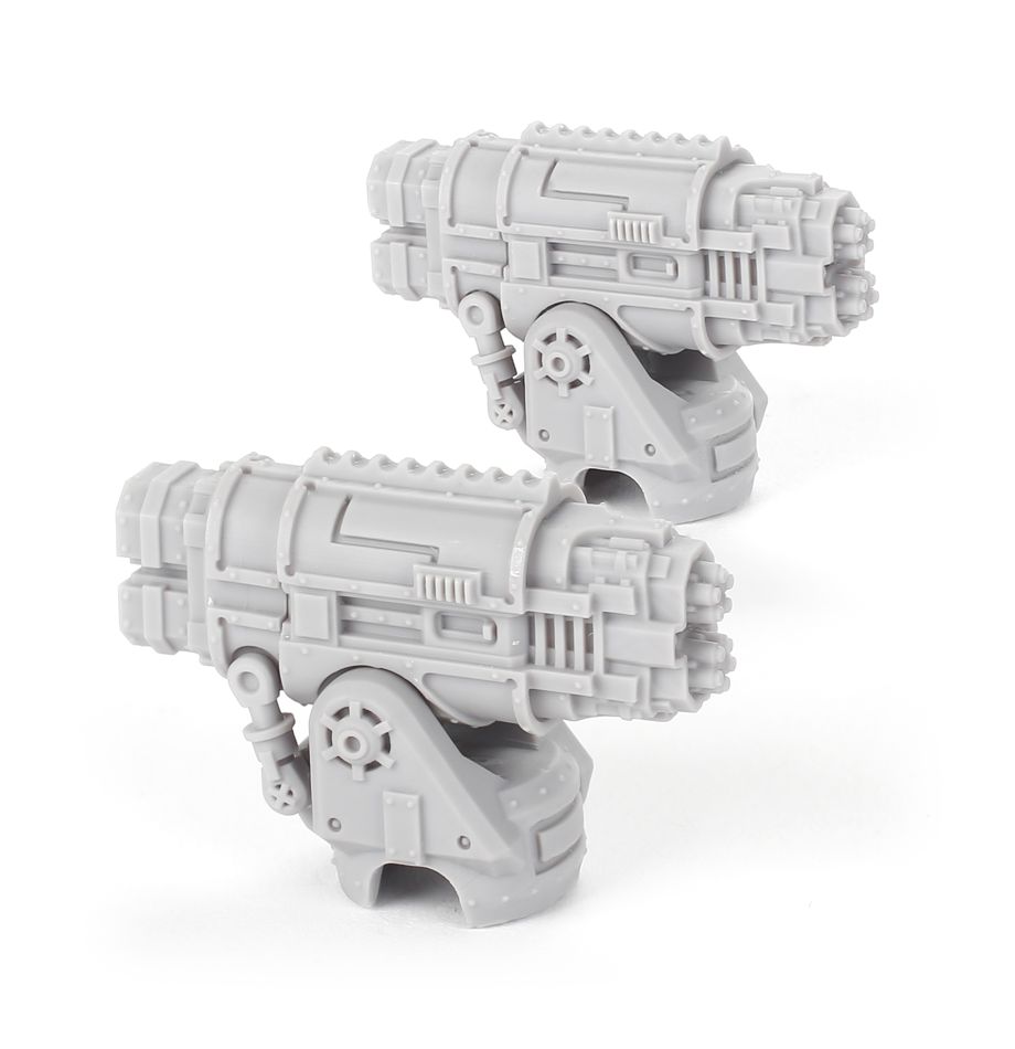 Paired Vulcan mega-bolters are the perfect carapace-mounted weapon for Warlord Titans that bear more powerful weapons on their arms, enabling them to take down an enemy Titan’s void shields before their devastating anti-armour weapons do the major damage. The rapid-fire shots of the Vulcan