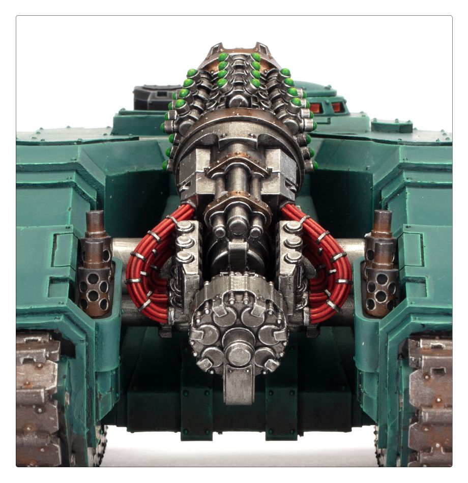 The Legion Arquitor is a heavy artillery platform designed to operate at the forefront of a Legiones Astartes advance. Equipped with a reinforced chassis and brutal short range firepower, it is called upon to break the most stubborn of fortifications or to annihilate massed enemy infantry and armour. The graviton-charge cannon fires energised canisters that impact among the enemy ranks, emitting a graviton field that crushes delicate circuitry and electronics, disrupting the advance of anything that survives the barrage.