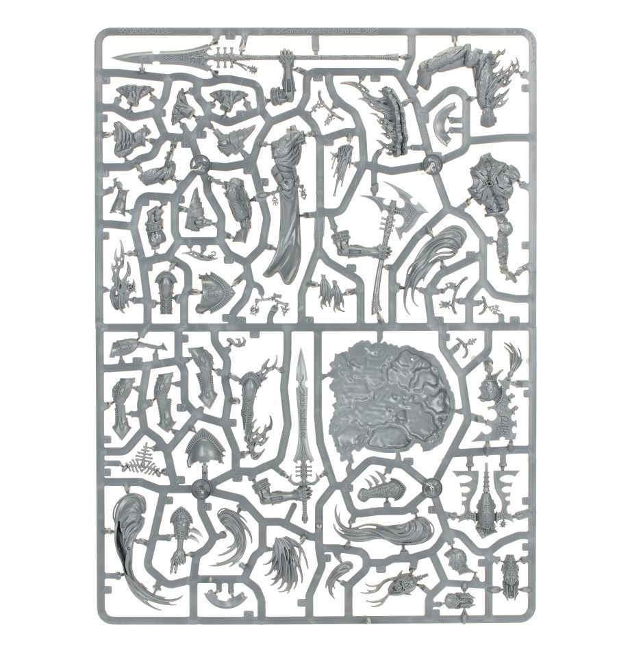 An Avatar of Khaine is an ancient deity incarnate – a burning shard of Khaela Mensha Khaine, the Bloody-Handed God of the Aeldari. Awakened for battle, he marches through enemy fire without breaking stride, laughing cruelly as his weapon – the Wailing Doom – cleaves flesh and tastes the blood of his foes with each strike. The Avatar’s mere presence incites a merciless rage in the Asuryani around him, his fearsome aura eradicating fear or hesitation in favour of a nigh insatiable murderlust. In these moments, the Aeldari seem transformed into a vision of the glorious and terrible conquerors