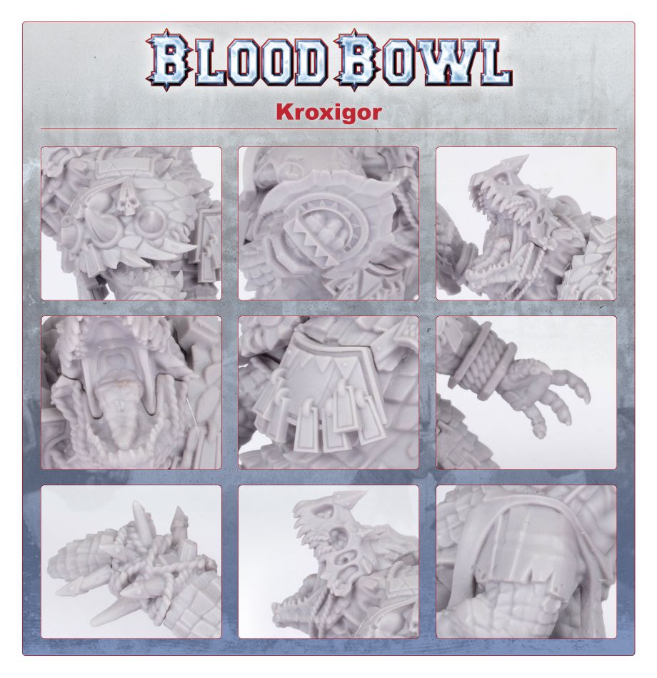 Surprising as it may seem, Kroxigor are the gentle giants of the Lizardmen race. Thought to have been created as builders and labourers to be strong and powerful, Kroxigor coexist contentedly with Skinks. Yet there are few sights more terrifying than a Kroxigor roused to anger. Capable of effortlessly tearing a man limb from limb, these mighty creatures have served in the armies of the Slann for millennia. Today, they are considered a great boon to any Blood Bowl team. Their long muscular arms and rows upon rows of serrated teeth set into powerful jaws make them a terror on the Line of