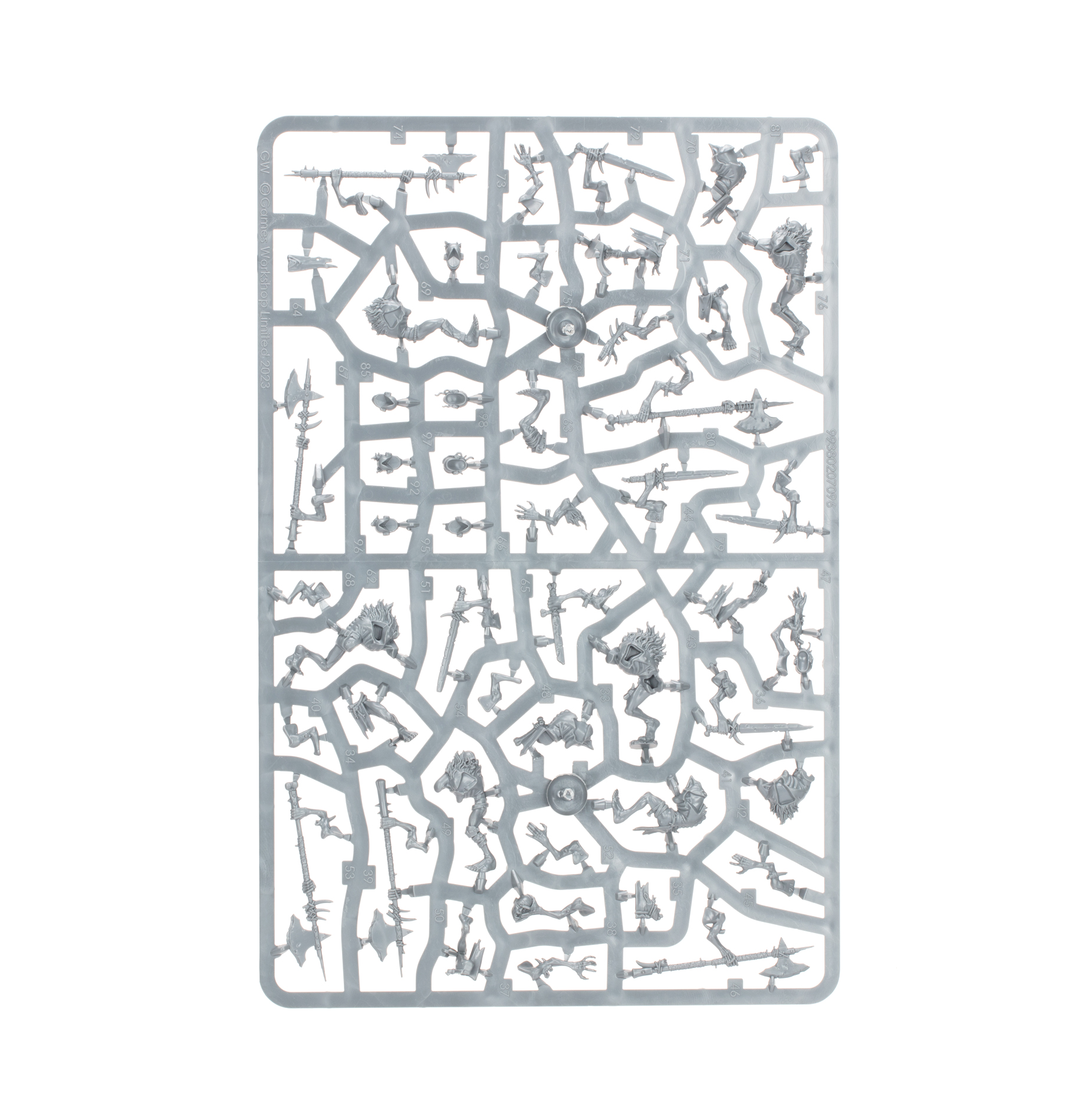 This multipart plastic kit builds 10 Cryptguard, devoted ghoul retainers for the nobility of the Flesh-eater Courts. The Cryptguard carry a variety of cursed weapons into battle – you can outfit each ghoul with a