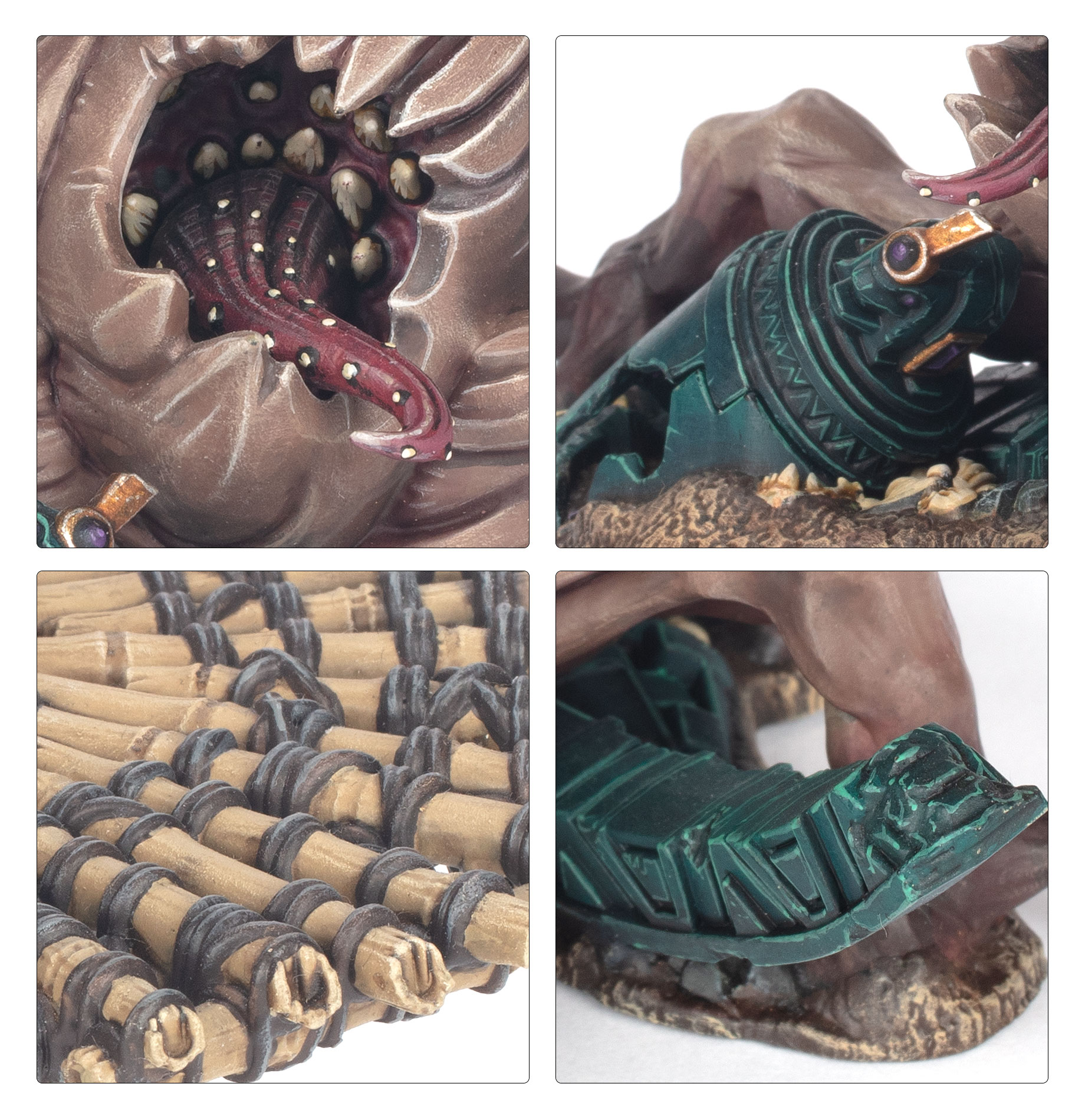 Elder Gnarloaks have drunk deep of the waters of Seraphon spawning pools. They have been known to lay dormant before thrashing into action to feed upon their prey before they can even blink, then laying silent again until their next hapless victims arrive.