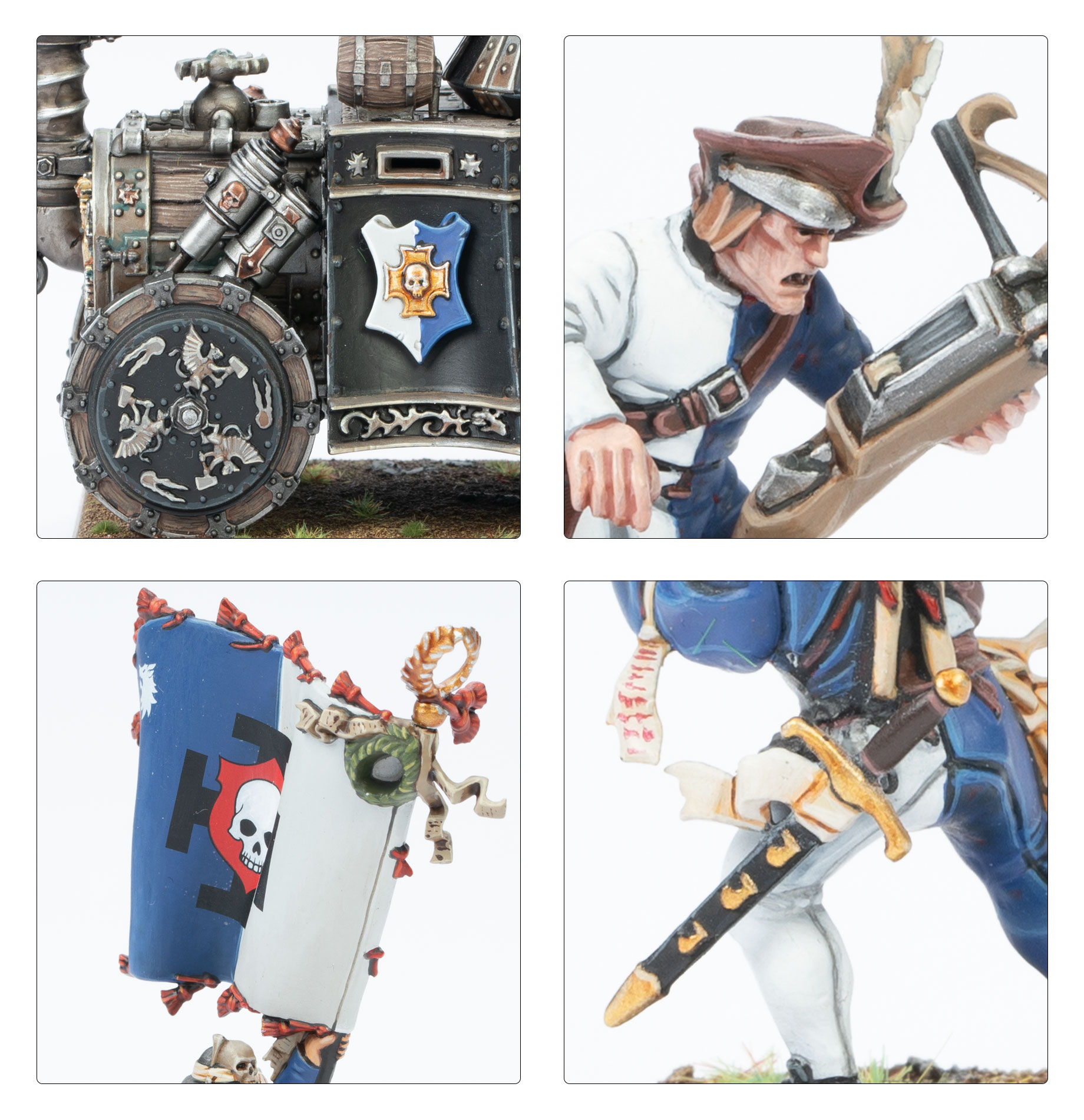 Every province and city-state in the Empire trains its State Troop regiments to fight together – swordsmen fight shoulder to shoulder with spearmen, as handgunners and crossbowmen fell their foes from afar. These brave soldiers are often accompanied in battle by Steam Tanks – monstrous, smoke-belching engines of war that rumble towards the enemy, firing deadly cannonballs from their steam-powered guns.