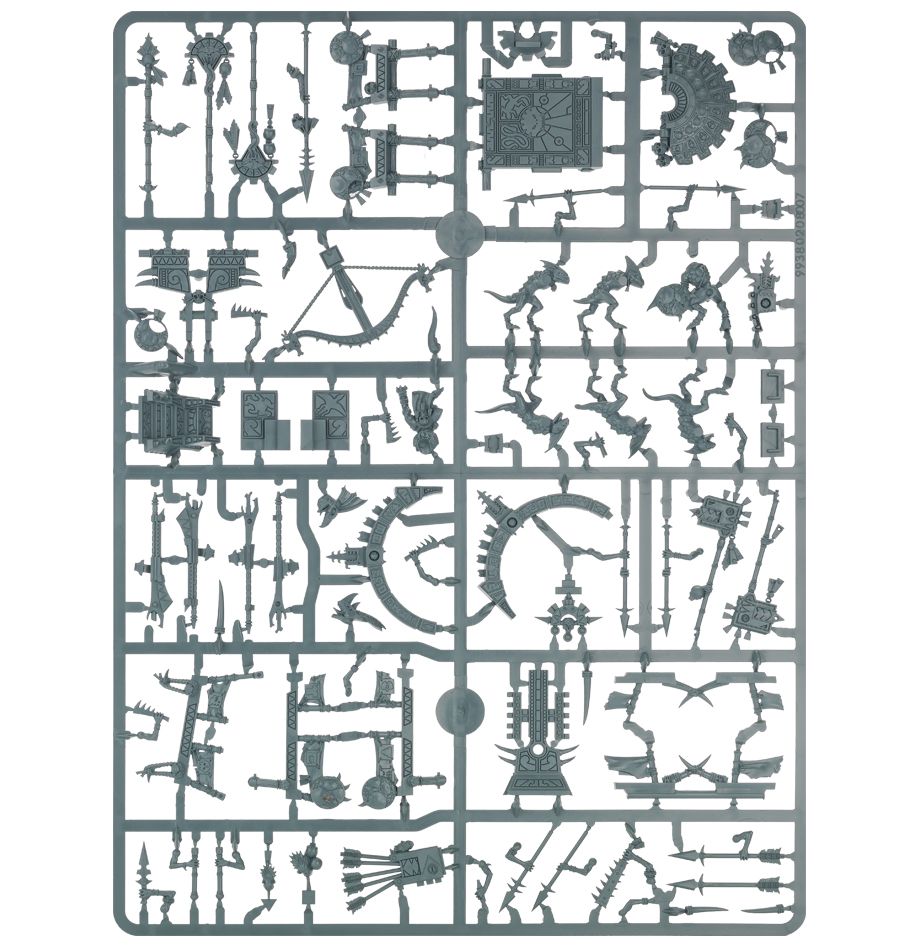 This multipart plastic kit builds an Engine of the Gods, a mighty stegadon hauling a sacred Seraphon weapon. This stubborn beast is covered in armoured scales, and the ringed shrine-engine on its back features ornate ritual