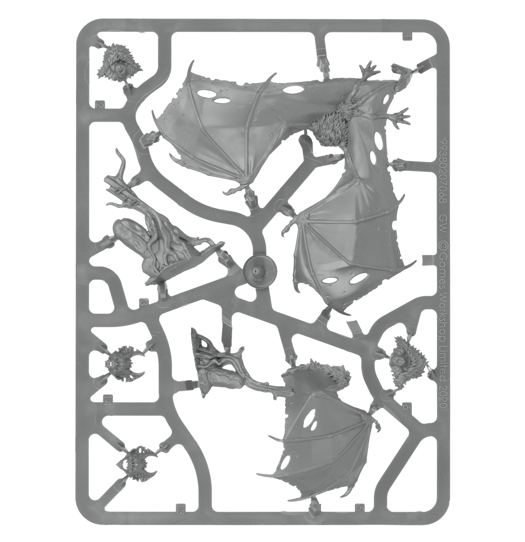 This multipart plastic kit builds three Fell Bats, winged monstrosities for your Soulblight Gravelords armies in games of Warhammer Age of Sigmar. Not only are they a useful delivery service for blood, but they’re also excellent scouts and flanking troops. With their