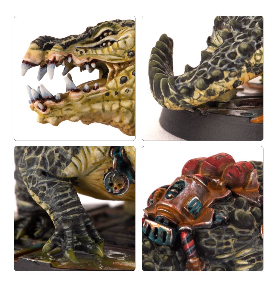 Hive legend has it that many thousands of years ago, during a different age of Necromunda, a now long-extinct type of reptile became the fashion accessory of choice for uphive nobility. Today, the Sumpkrocs that House Goliath keep are somewhat different to the original creature, with centuries of genetic cloning causing a few changes and they no longer wholly resemble the creature first imported…