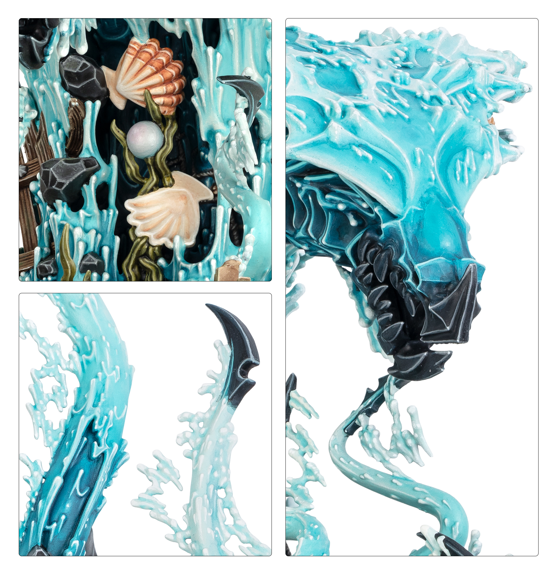 The Manifestations of the Idoneth Deepkin bring the horrors of the deep to the Mortal Realms. Conjured through elemental ritual and empowered by the spirits of the ocean, an Incarnate of the Deep is a ship-breaking tempest given physical form. Reaching out with serpent-like Abyssal Tendrils, it seizes its prey and draws them inexorably in, drowning them within its turbulent mass.