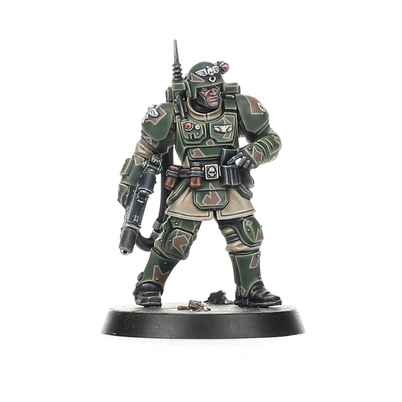The Kasrkin are the elite of the elite. These special operatives are trusted with more potent weaponry – such as high-powered hot-shot lasguns – and are equipped with thicker carapace armour to protect them in the most dangerous killzones.