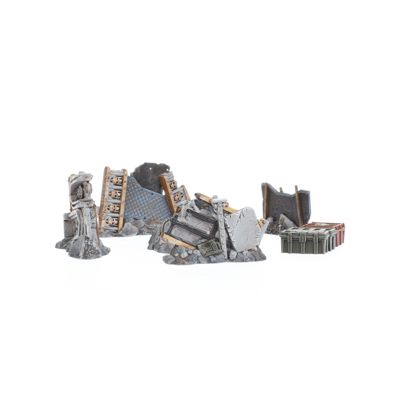 This set includes a game board and a multipart plastic kit that builds 14 terrain pieces to create Killzone: Volkus – an urban battlefield to enhance games of Kill Team. Featuring ruined buildings and structures of various sizes alongside