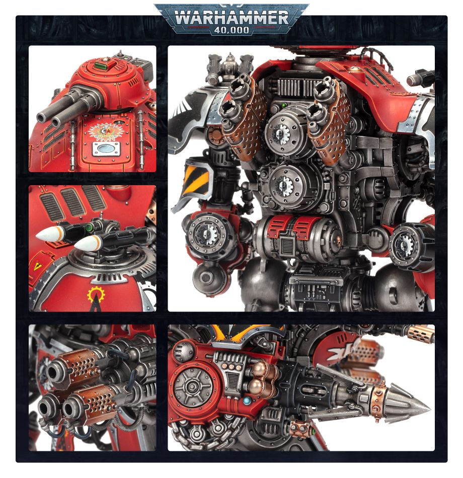 Knights Valiant defeat the Imperium’s enemies through overwhelming firepower at close range. Amidst its barrage of cannon fire and missile strikes, it unleashes an inescapable firestorm that can annihilate incoming hordes or smash through opposing battle lines. With its crackling harpoon, it can destroy far larger behemoths with impunity.