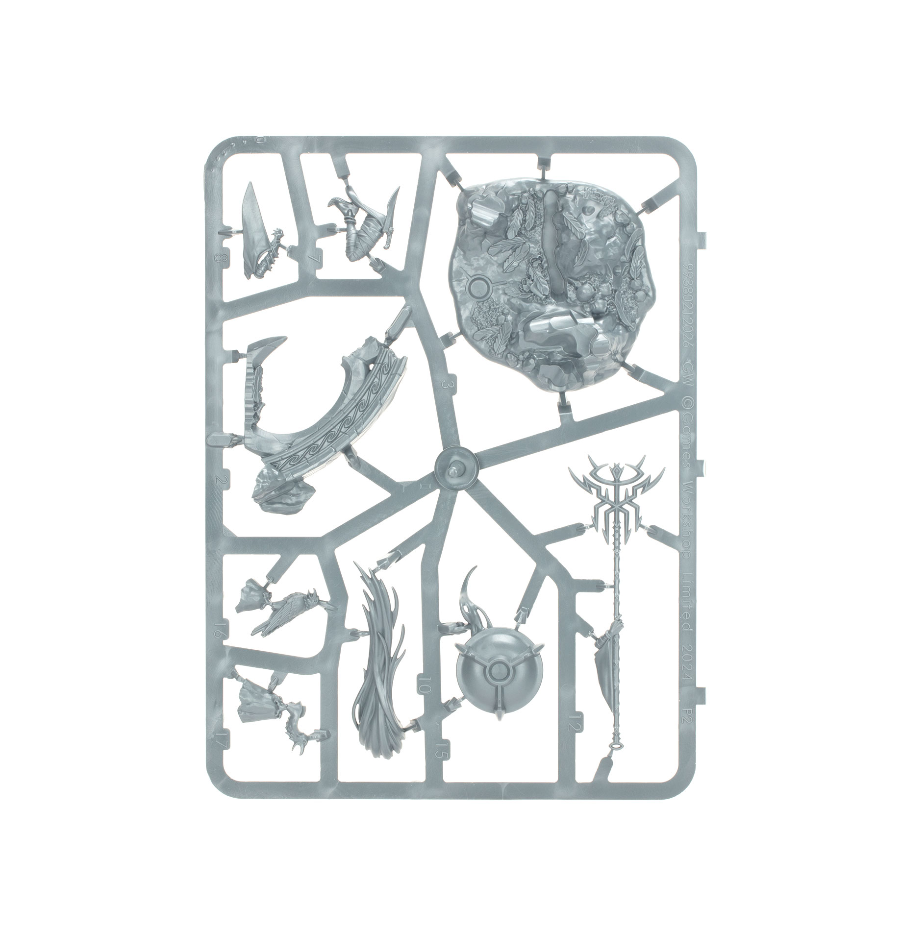 This multipart plastic kit builds Krethusa the Croneseer, an outcast prophet of the Daughters of Khaine. Krethusa carries the Staff of Morai-Heg, and wears the barbed circlet of her