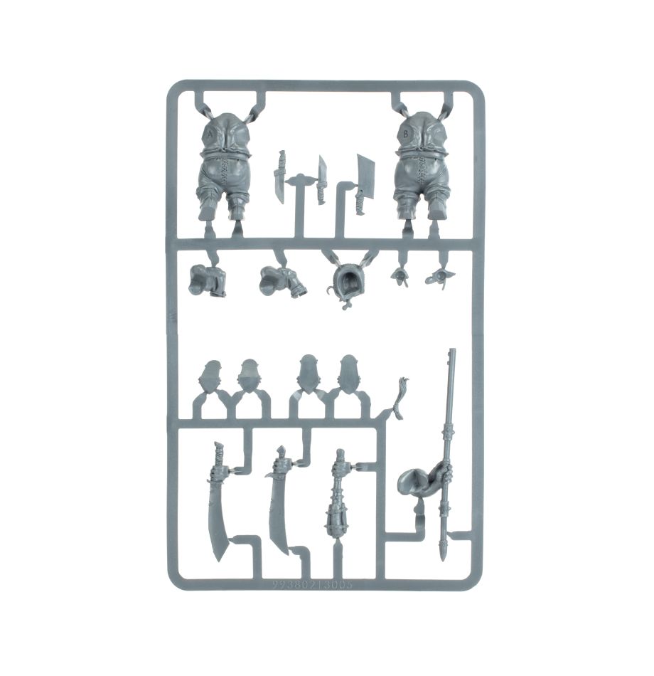 Leadbelchers are generally regarded as unhinged by most other Ogors, but also highly entertaining. They are obsessed with destruction and noise, and arm themselves with great portable Leadbelcher guns. Before battle, Leadbelchers fill their gun’s barrel with crude black powder, metal shot, rusty nails, an assortment of wickedly bladed weapons and even the occasional cannon ball. Suffice to say, their approach to warfare is unsubtle, though entirely effective. If a volley of fast-moving, sharp missiles doesn’t kill their foe, then a quick beating with their guns should finish the