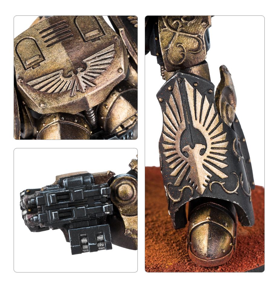 In those isolated cases where the body has been all but irrevocably destroyed, but the Custodian’s mind remains intact and their will to survive is undimmed, interment within the cold and unyielding body of a Dreadnought is the next step. To this purpose, the few Dreadnoughts of the Legio Custodes are as singularly advanced as their other wargear, outfitted with weapons and systems artificer-made by the servants of the Imperial Court. At the time of the outbreak of the Horus Heresy, the most widely employed was the Contemptor-Achillus, a general battle unit which combined phenomenal strength