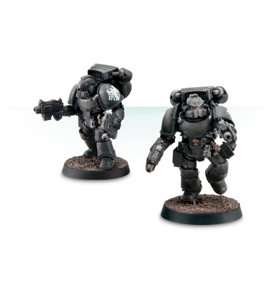 The Legion MkIV Destroyer Squad with Jump Packs set contains five multi-part resin models with four pairs of Tigrus pattern bolt pistols, as well as three phosphex bombs and a rad-missile launcher.