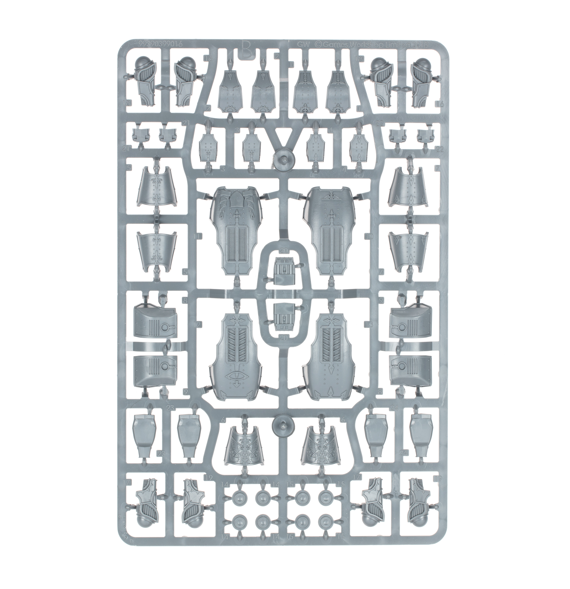This multipart plastic kit builds two epic scale Warhound Scout Titans, aggressive god-engines with an iconic hunched profile. Each Warhound features two arm-mounted weapons, chosen from an extensive arsenal – this kit includes two