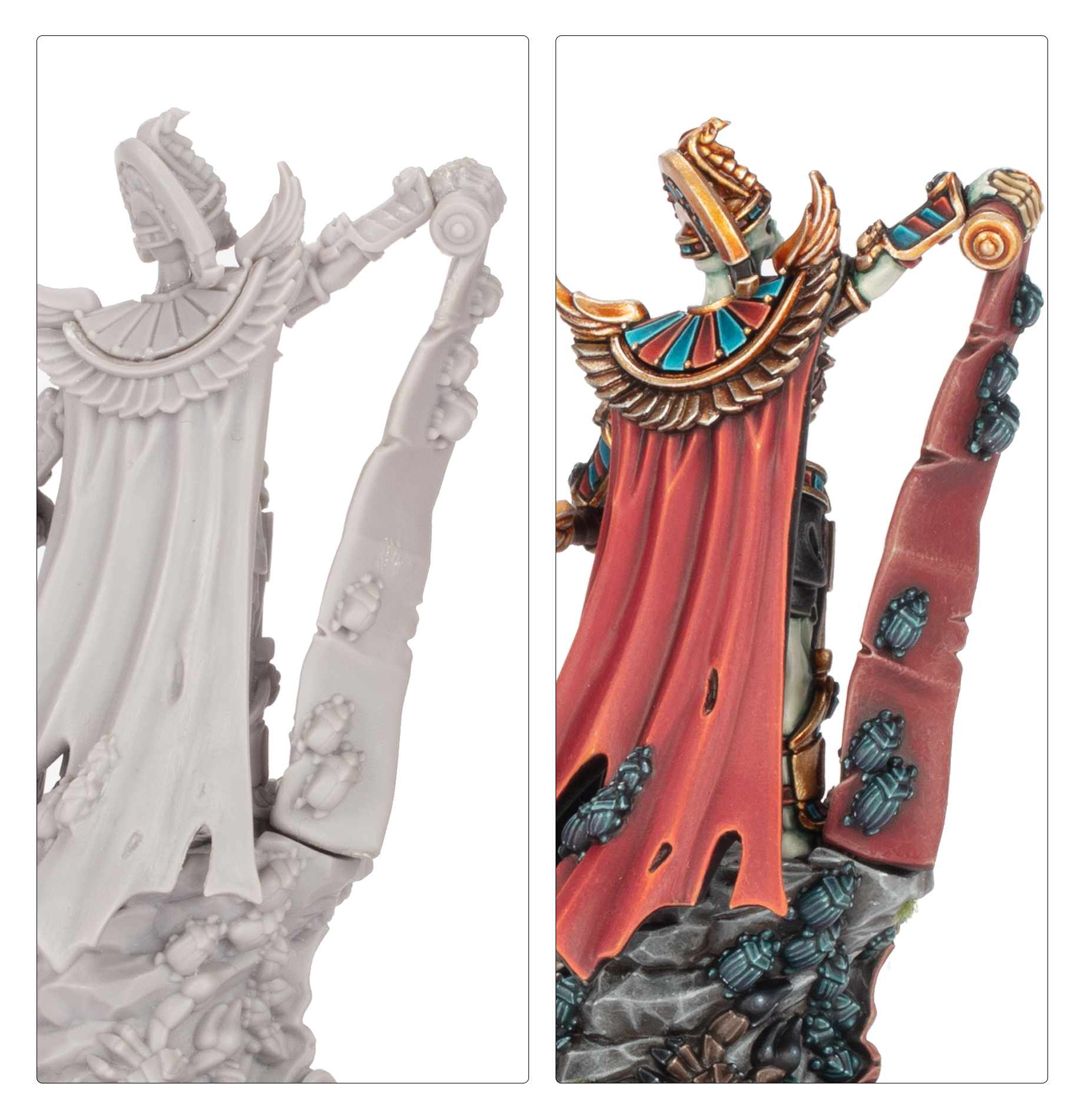Nekaph was a formidable man in life, renowned for his enormous physique, peerless strength and unwavering loyalty to his master – Settra, the Imperishable. In death, the King’s Herald can still be found where the fighting is thickest, proclaiming his lord’s will, announcing his many titles, and striking down his most prominent foes with murderous swings from the Flail of Conquered Kings.