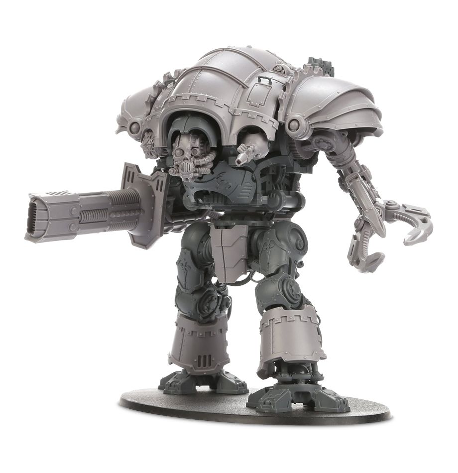 The Styrix is a Knight of ill omen, its name linked to the massacres of the Age of Strife and the Great Crusade that followed, and its machine spirit well-accustomed to slaughter and death. To bond with such a steed stains the reputation and soul of any Noble scion – yet such is its grim efficiency in wholesale extermination that many will take on the maddening burden regardless. The Styrix reduces great swathes of infantry to ash with the deadly beams of its volkite chieorovile, while its graviton gun pins victims in place for waves of radiation to boil flesh from bone. Even armour is no