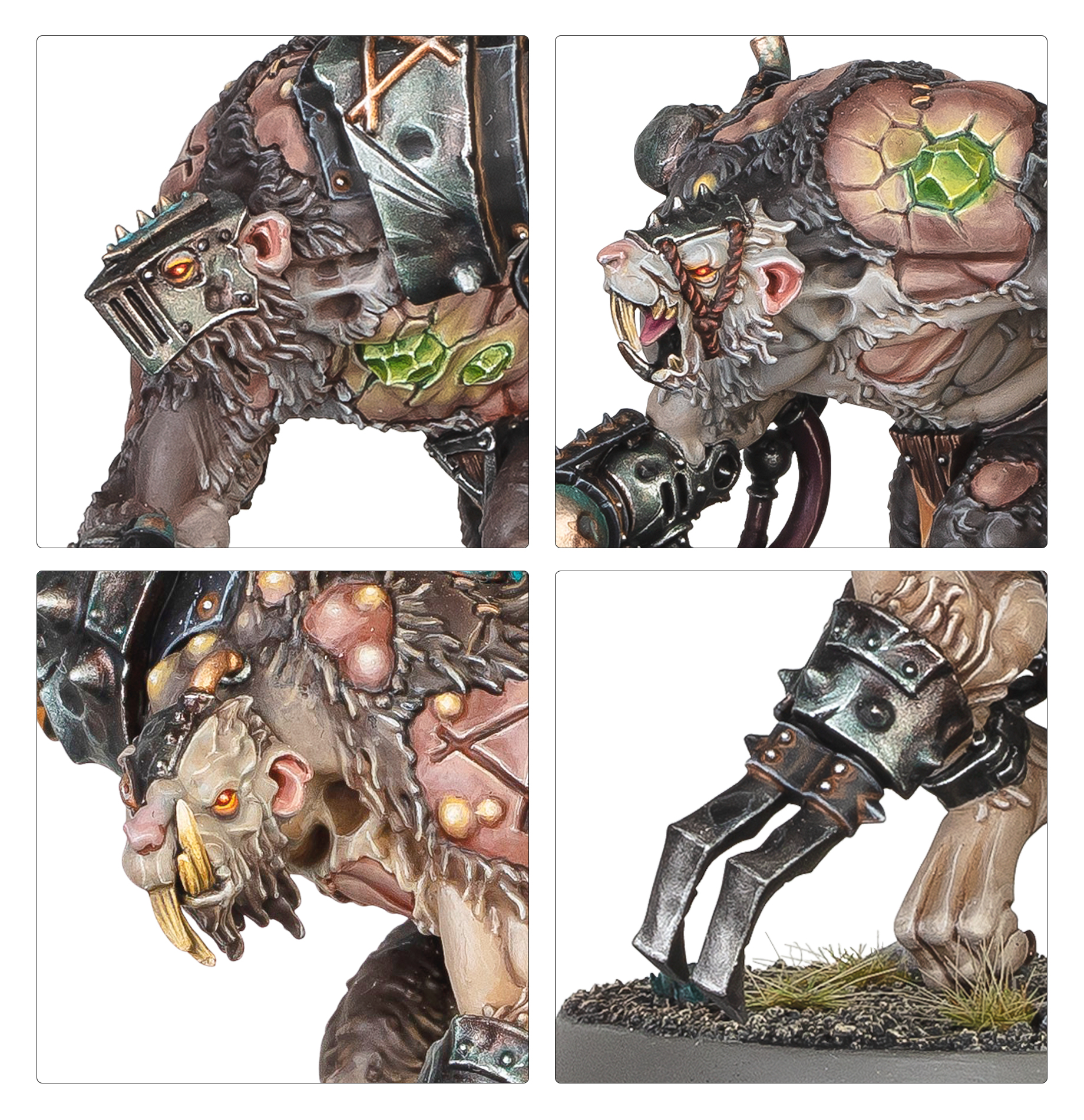 Rat Ogors are rabid war-mutants created by grafting nimble Skaven to the muscled bulk of ogorkind through strange flesh-crafting, sorcery and infusing them with warpstone shards. These misbegotten warriors are then pumped full of all manner of toxic serums designed to magnify both their regenerative properties and their natural frenzy.