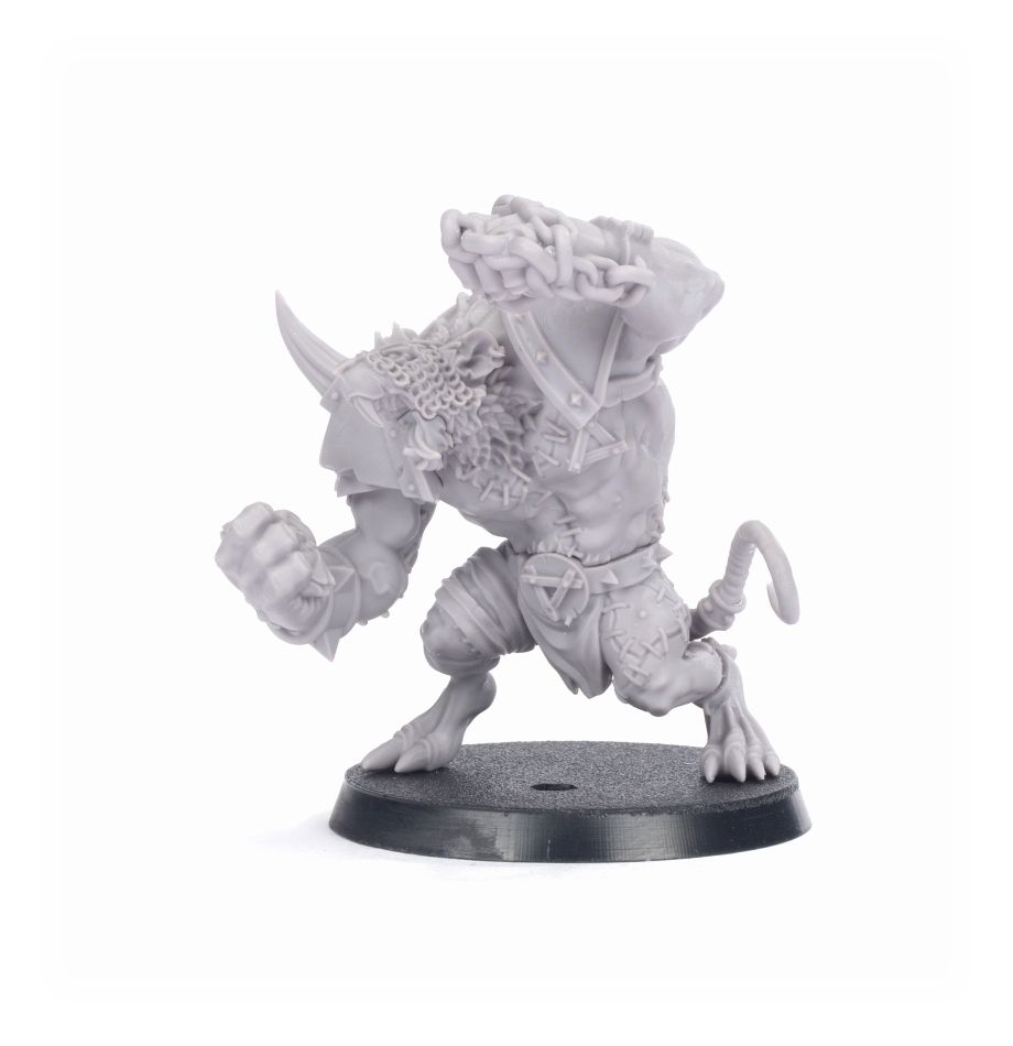 Each Rat Ogre is a mass of mutated muscle crafted by Clan Moulder in an attempt to create the ultimate Blood Bowl Big Guy. These enormous, augmented Skaven have undergone numerous surgeries and modifications in order to become the savage beasts we see take to the field. Evidence of their extensive modifications scars their body – stitches decorate their hulking frames, knitting them together.