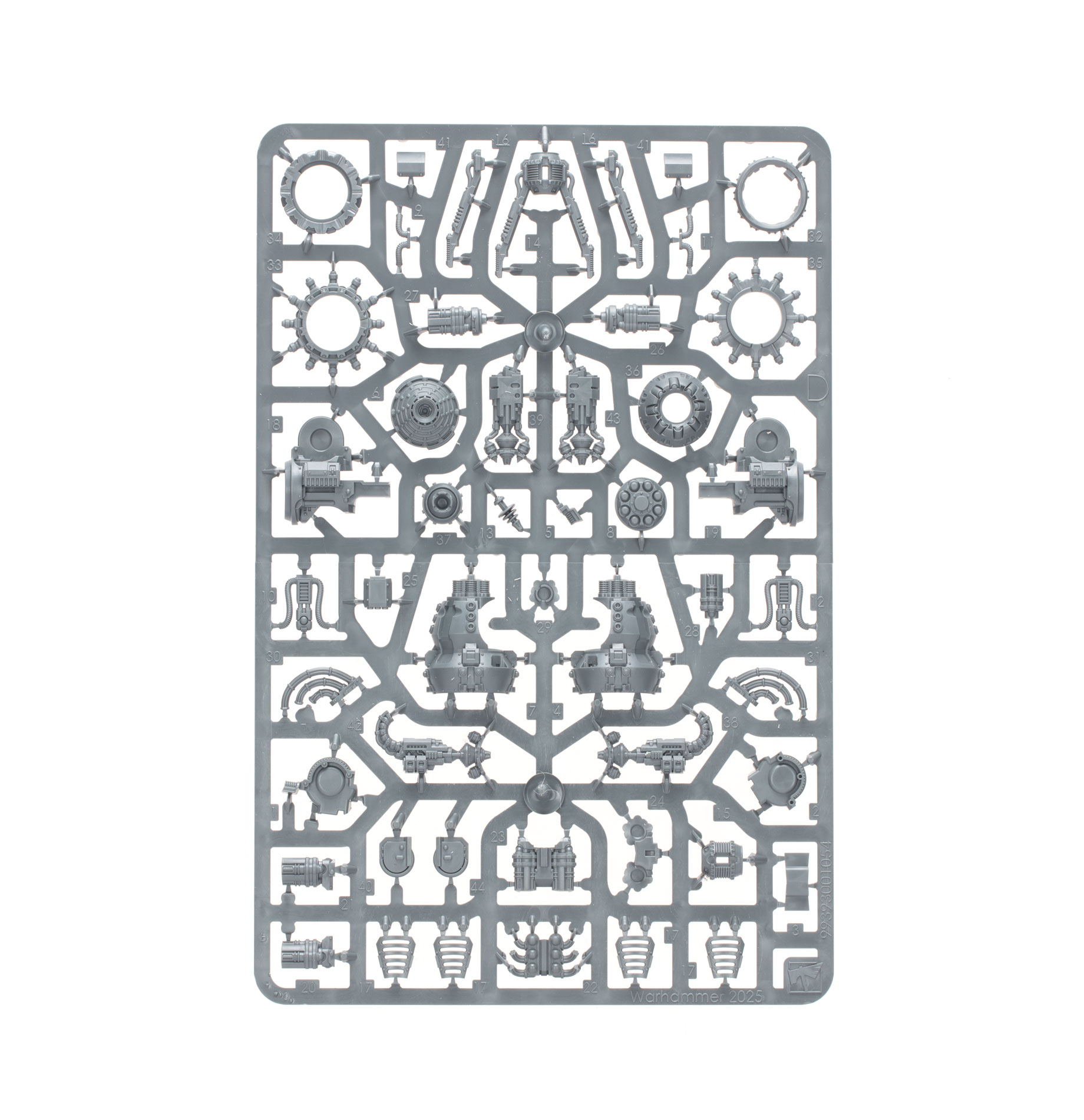 This plastic upgrade kit can be used to equip Saturnine Siege Dreadnoughts for close-range combat with an inversion beamer, vehicle-crushing graviton pulveriser, and chest-mounted heavy particle shredders to obliterate nearby infantry. Combine with the Saturnine Siege Dreadnought – Chiron Configuration kit, available separately, to increase your weapon options, or with a second Saturnine Siege Dreadnought