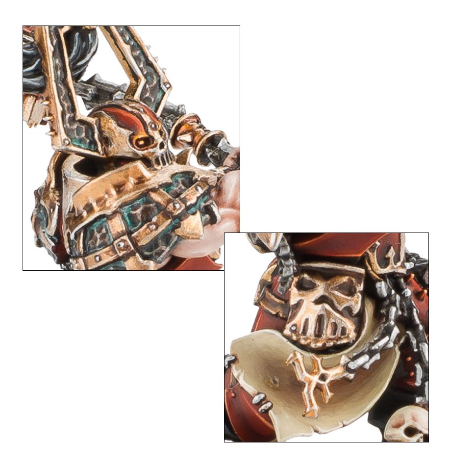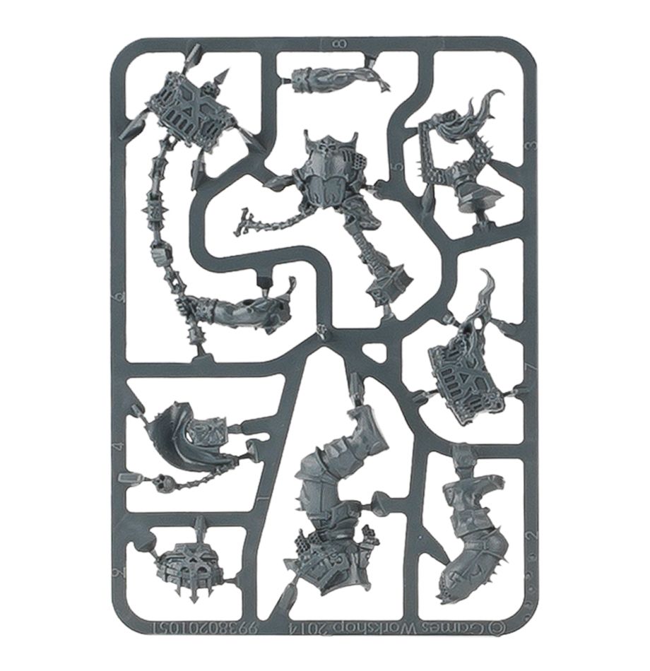 Utterly terrifying warrior-smiths who, legends say, simply appeared out of nowhere, striding from the wilderness with a psychotic gleam in their eyes, the Skullgrinders are hulking creatures that command awe even amongst the most lunatic of the Bloodbound. Wielding sacrificial, burning anvils at the end of long brass chains, their arcing, swinging attack bursts the heads of their opponents instantly, leaving nothing but a faint red mist and some shattered, splintered bone. Each skull dispatched in this way causes the the anvil to burn ever brighter, until the sheer heat melts enemy armour