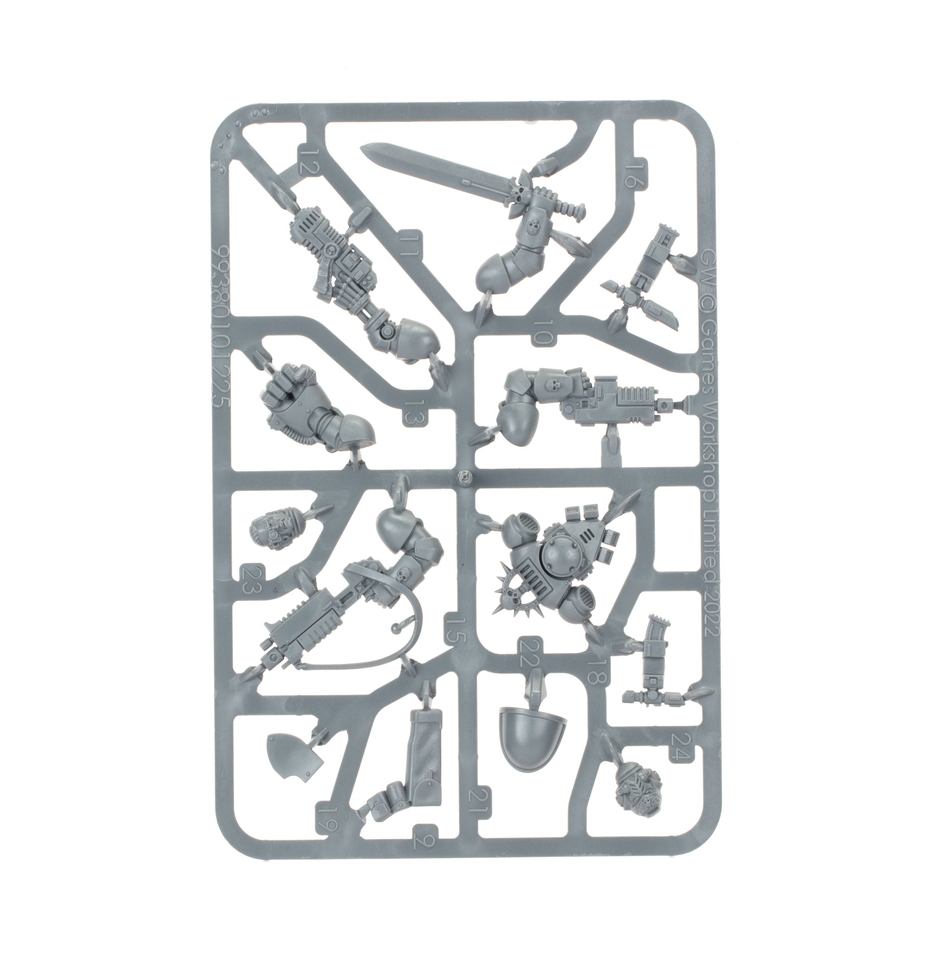 This multipart plastic kit builds one Space Marine Lieutenant, a trusted officer of his Chapter’s ranks. He comes with multiple weapon options – his left hand grips a heavy bolt pistol, a plasma pistol, or a master-crafted bolt weapon for shooting at a distance, while his right arm can wield a power