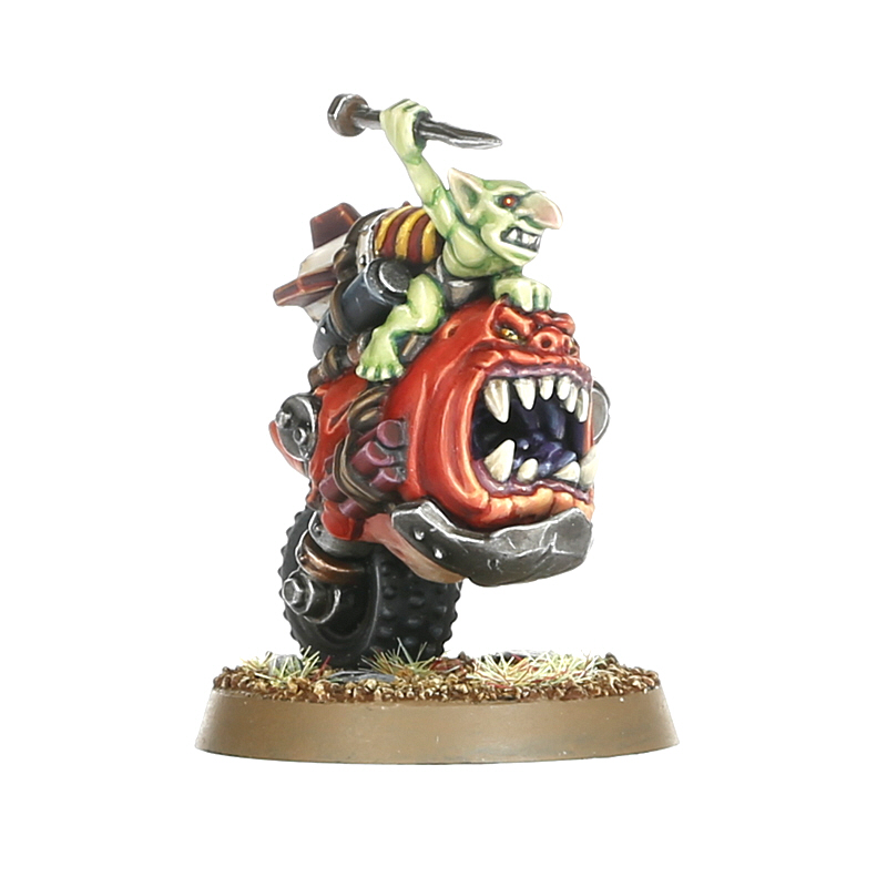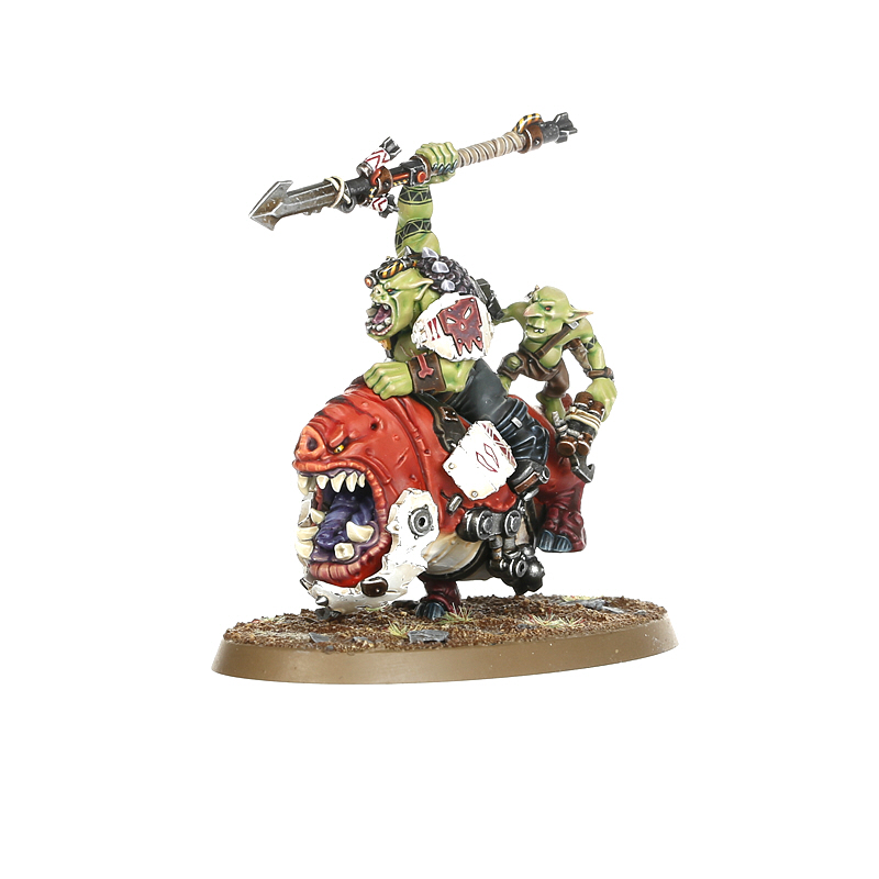If their impressive charges weren’t enough, units of Squighog Boyz also hurl explosive, rokkit-propelled stikkas at their enemies, softening up any tough armour in the process. Behind each boy clings an unfortunate
