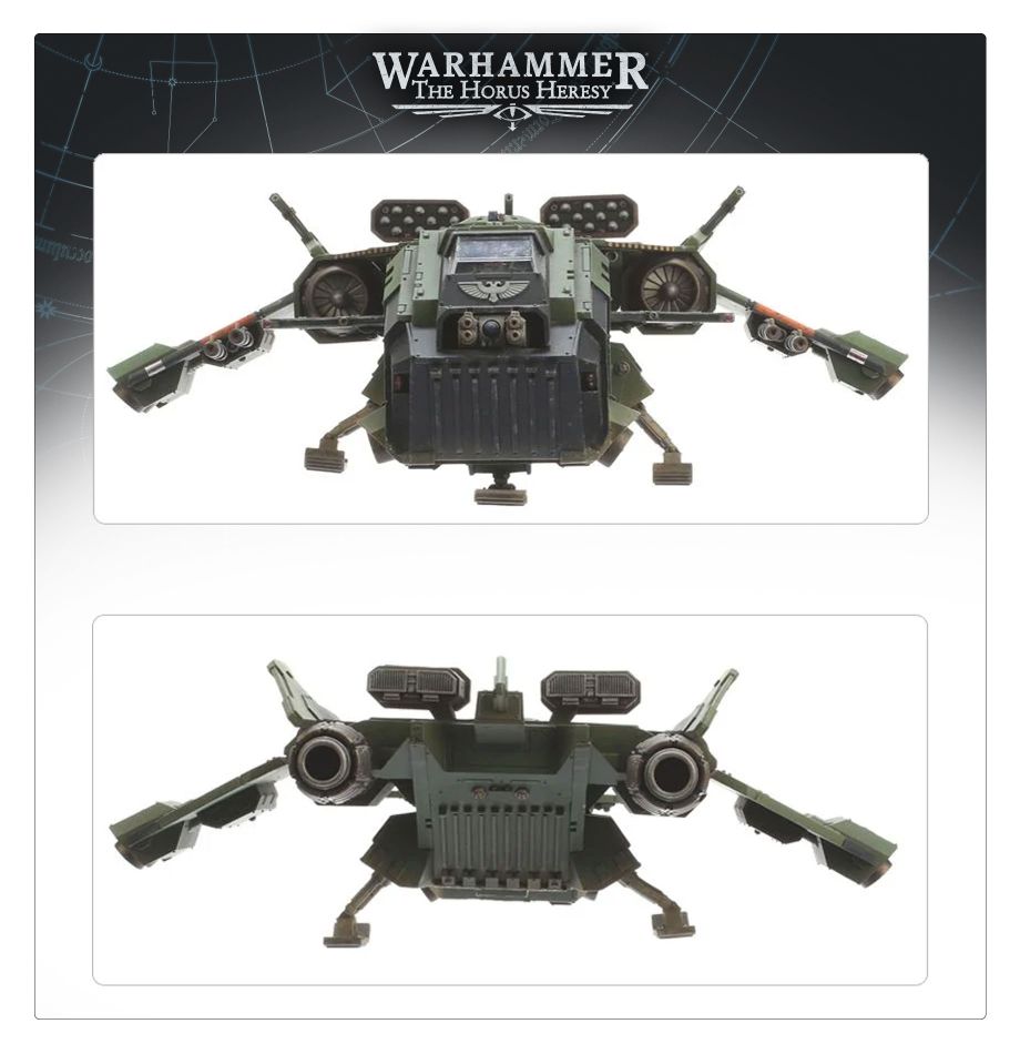 A formidable gunship found throughout Space Marine airfleets, the Storm Eagle is a rugged and durable machine, heavily armed and armoured for its size. Though it lacks the sheer speed of a true fighter, this flexible craft serves as a long-range transport, orbital shuttle, airborne scout, and fast-response interceptor – in addition to its primary role as a dedicated tactical strike unit, delivering full squads of armoured Astartes infantry to the frontlines while laying down fearsome suppressive fire.