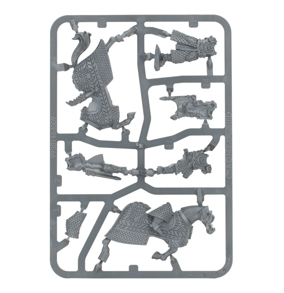 Théoden, King of Rohan on Foot and Horseback is a multipart plastic kit supplied as 2 models, 1 on foot and 1 mounted and charging. Both models feature options for a helmeted or