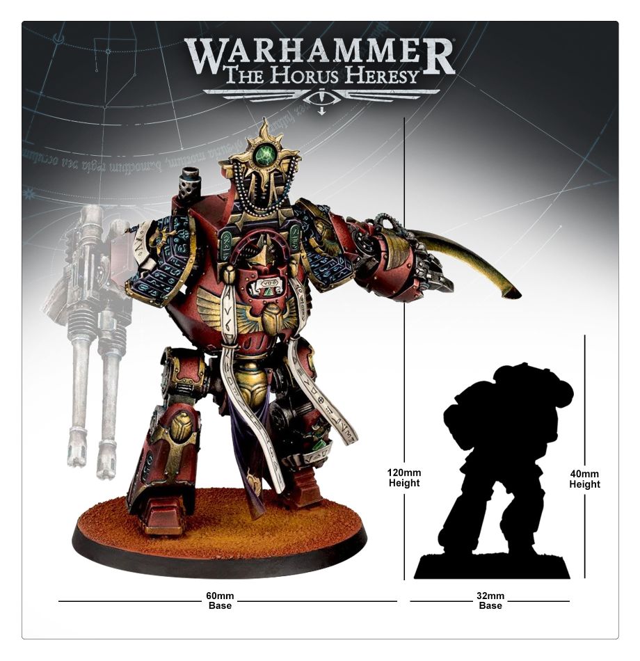 An innovation driven by the will of Magnus himself, the Contemptor-Osiron is a truly esoteric variant of the Dreadnought chassis – one capable of medically sustaining the mind and powers of a mortally wounded psyker. Interfaced into the crowning psychometric lattice from which the Osiron takes its name, the fallen psykers of the Thousand Sons Legion walk the battlefield once more, wielding the formidable firepower and indomitable armour of a Contemptor Dreadnought alongside massive force blades and their own arcane might – with unnervingly potent results.