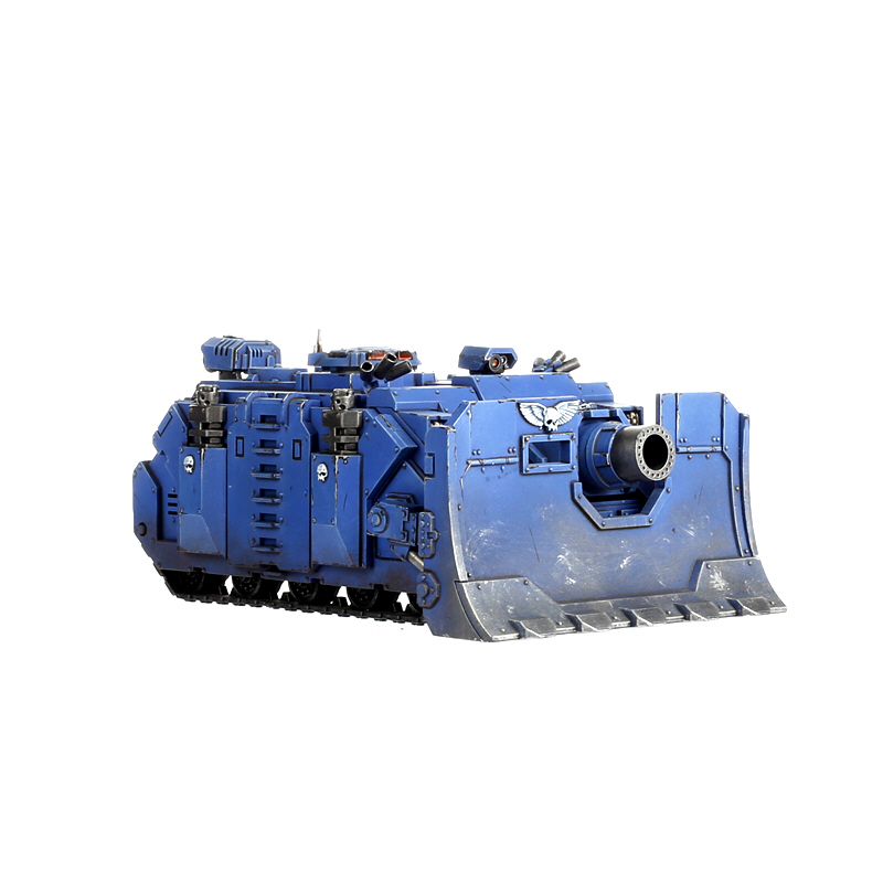 The Vindicator is a Rhino-based siege tank that boasts the most devastating weapon in the Space Marines’ armoury – the demolisher cannon. The demolisher cannon is the weapon of choice amongst the Imperium’s armies when faced with dug-in enemy infantry in a dense environment such as a cityfight or siege. The terrific blast unleashed by the detonation of the huge demolisher shells can bring down buildings in which the enemy take cover.