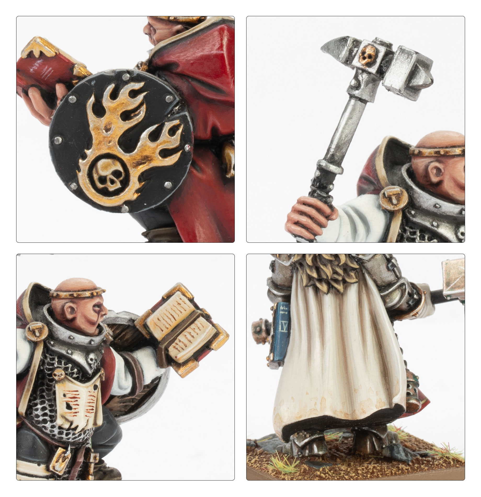 ​​Warrior Priests of Sigmar lead and inspire troops in battle, and also minister to their spiritual well-being. On many occasions, a rousing speech or tour of camp by one of these faith-filled preachers has restored faith, brought hope, or stayed a mutiny when the words of even the most respected general have fallen on deaf ears.